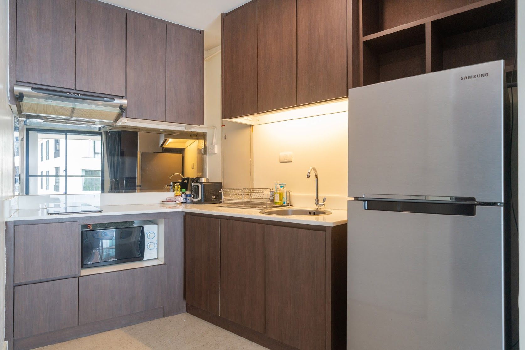 Our apartment is fully furnished and it's spacious enough for 2 people. The size of the apartment is around 43 sq.m. There is a separate living room and bedroom with an en-suite bathroom. A compact kitchen is ready for your use. We provide kitchenware and kitchen appliance, dining table, dining chair, sofa & TV in the living room and bedroom. The washing machine is on a balcony. There is wifi from the common area that can be used in the room.