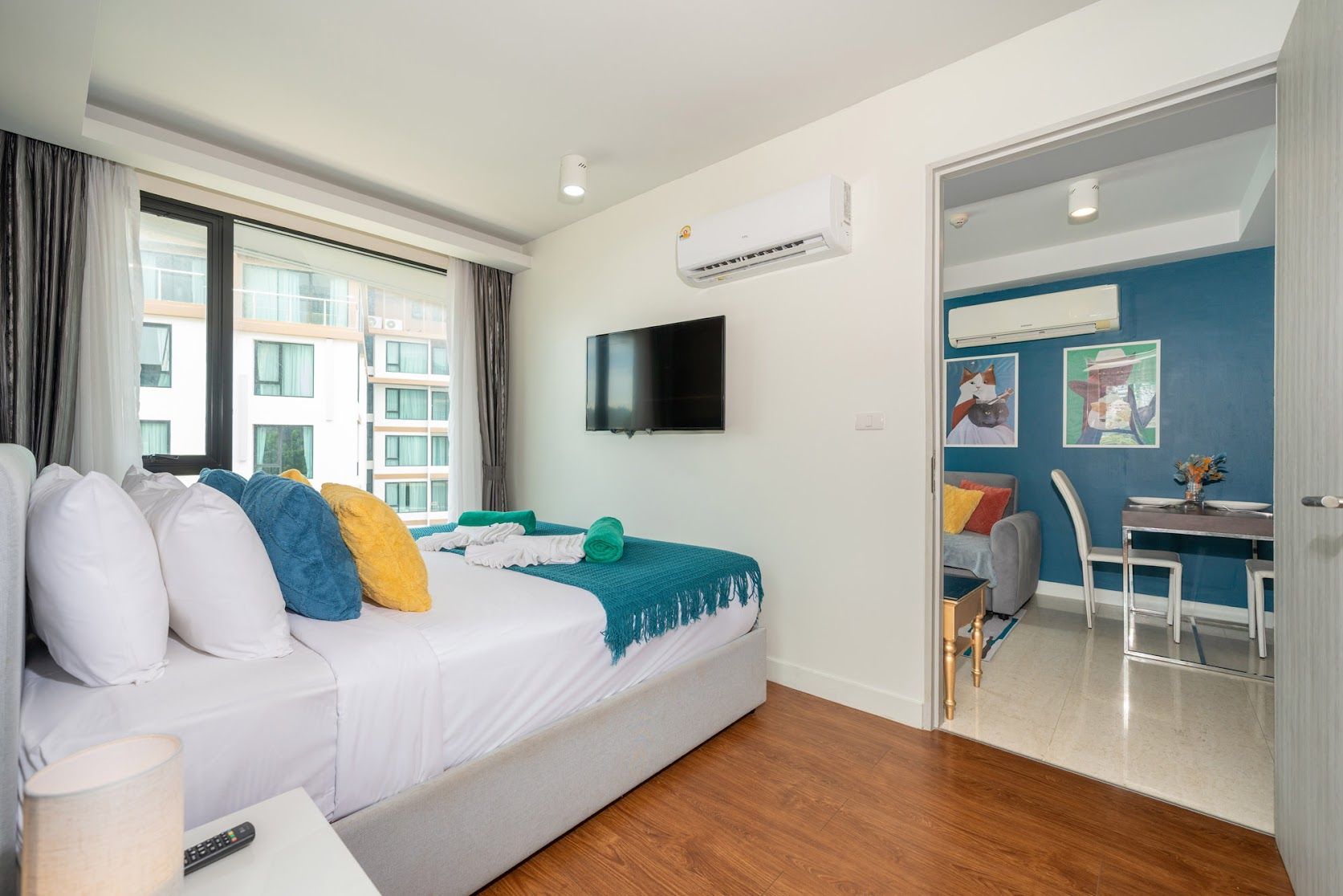 This stylish place to stay is perfect for group trips. 1 bedroom apartment is situated in the North of Phuket. It's only 10 minutes walk to Surin beach where is one of the most beautiful spots on the island. We offer a resort stye condominium, you will enjoy with a rooftop swimming pool and gym.